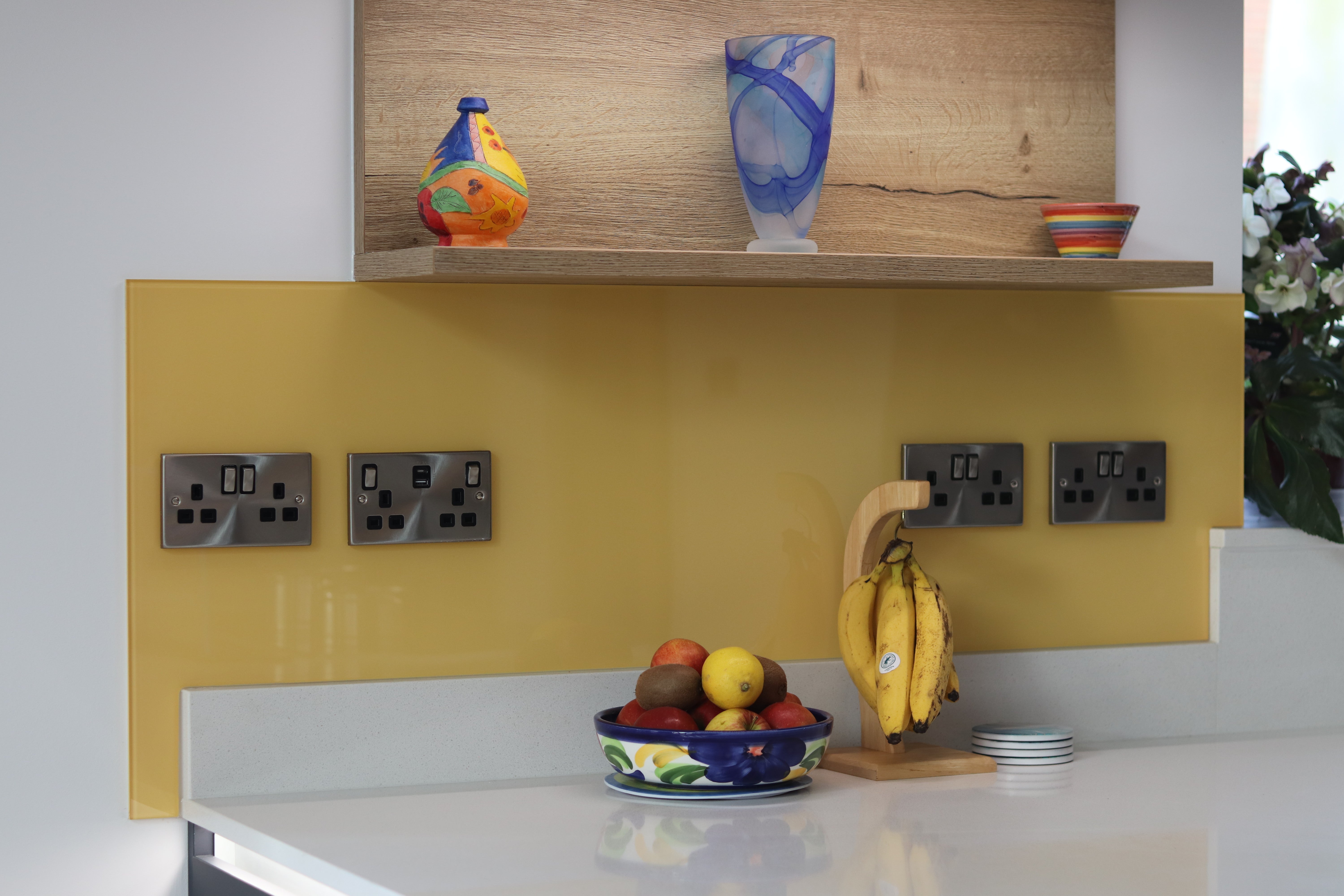 Cleverly placed sockets that are out of sight but easily accessible means the oak bar area can be used for dining or working area.